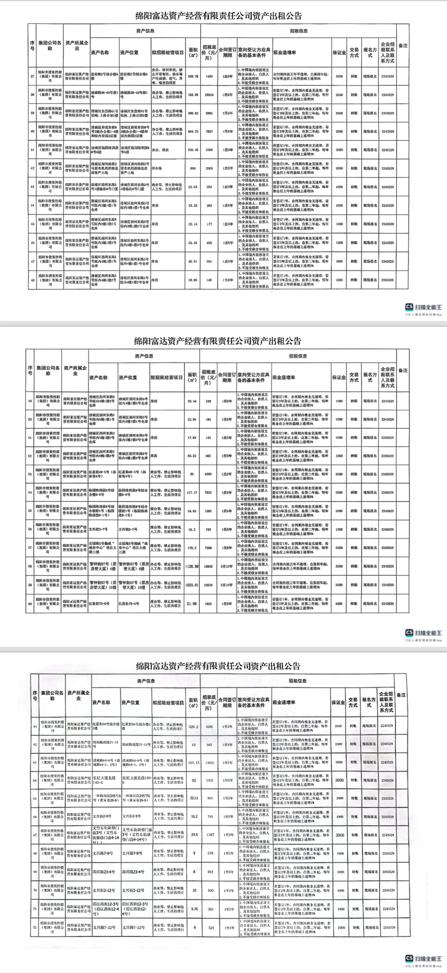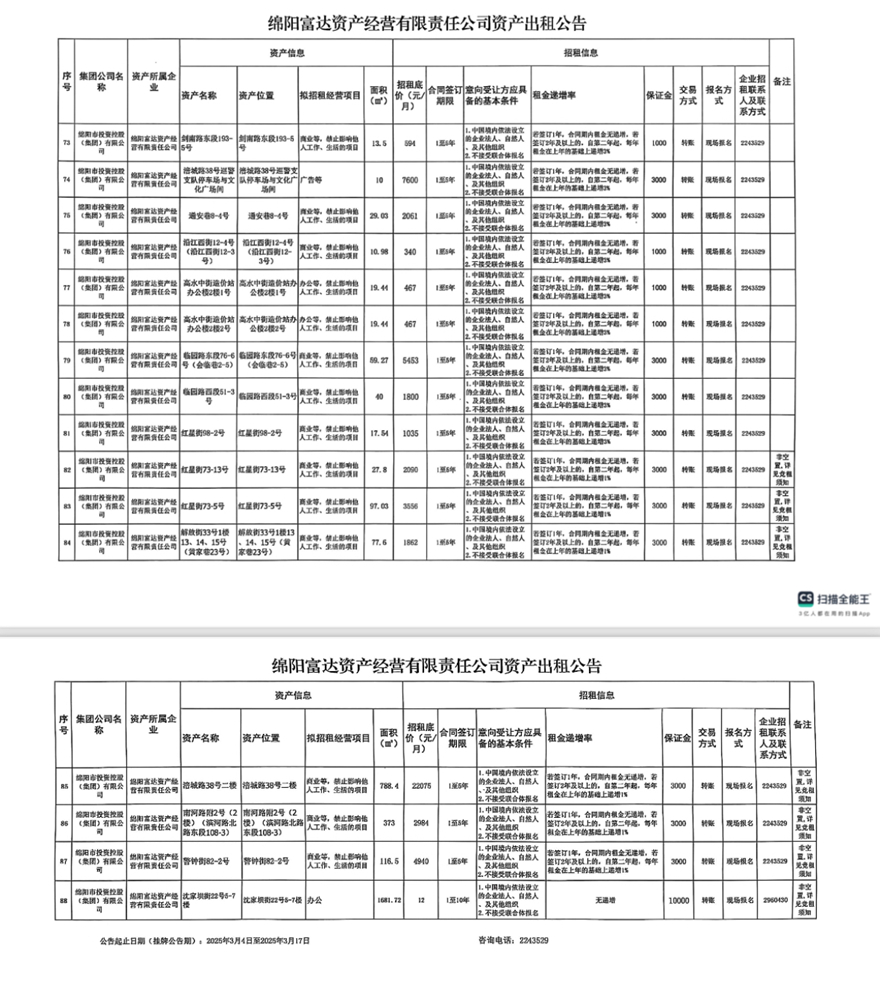 綿陽富達(dá)資產(chǎn)經(jīng)營有限責(zé)任公司資產(chǎn)出租公告