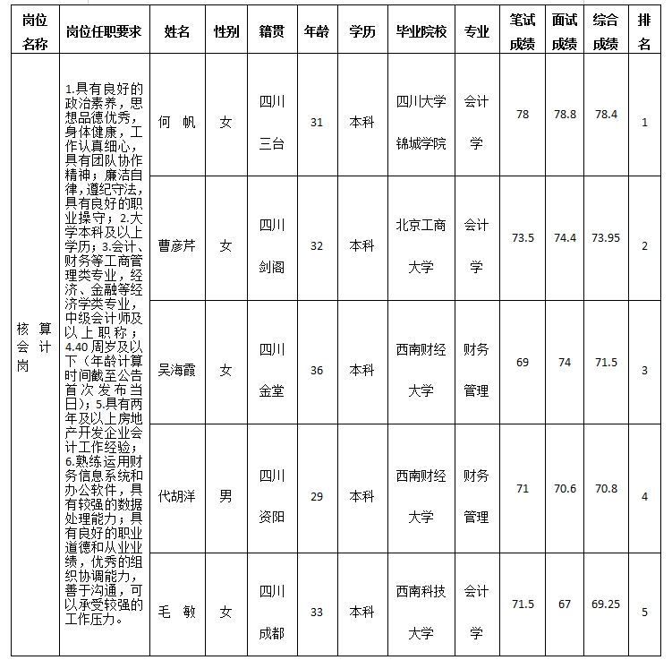 根據(jù)綿陽市嘉遠(yuǎn)瑞華房地產(chǎn)開發(fā)有限公司發(fā)布的招聘公告及招聘相關(guān)規(guī)定,經(jīng)筆試、面試等程序,現(xiàn)將筆試、面試成績予以公示。